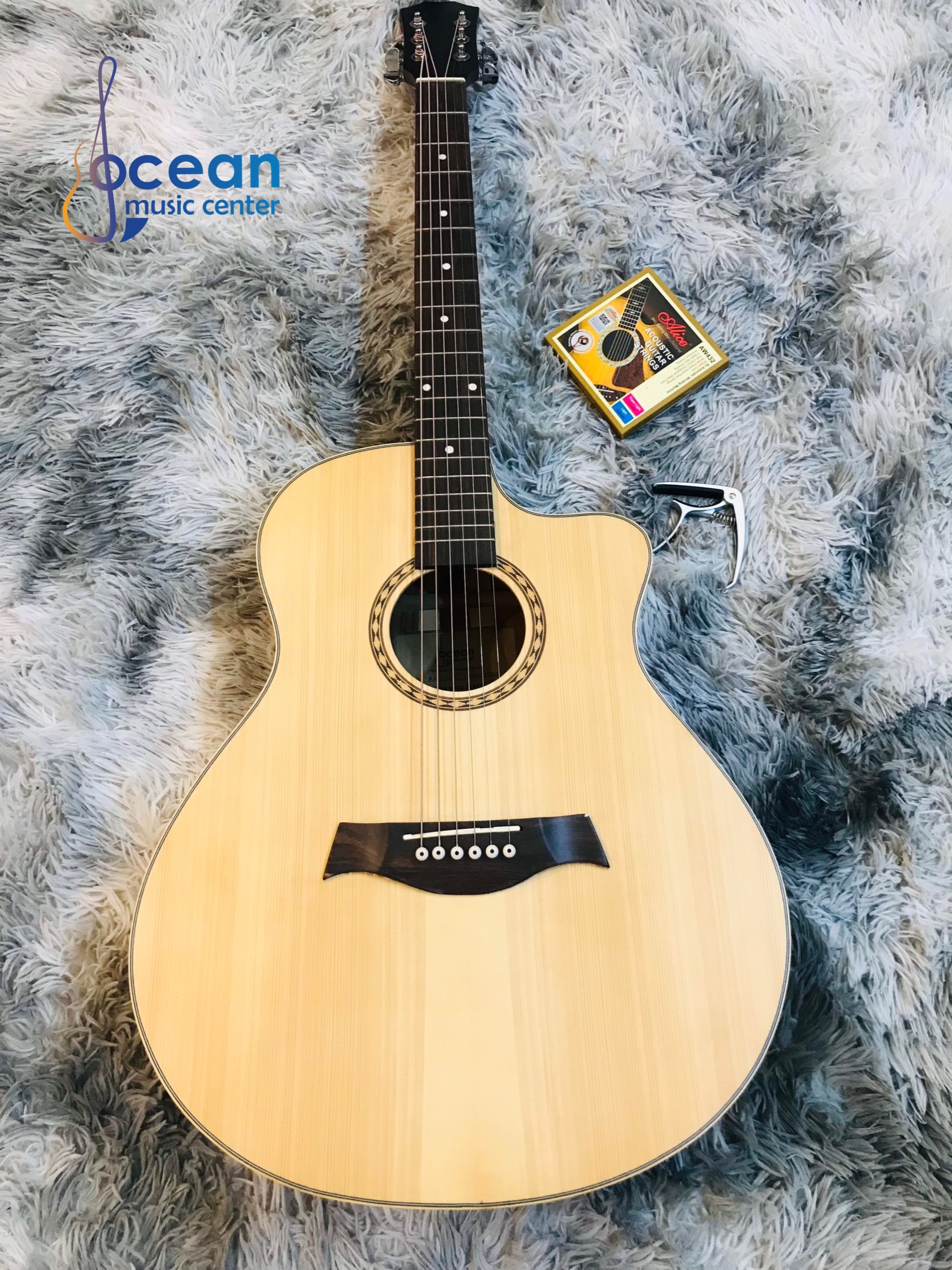 – Phụ kiện tặng kèm khi mua đàn: Bao da 3 lớp, Capo guitar, 01 bộ dây đàn dự phòng kèm theo, miếng dán chống xước, pick gãy đàn, tài liệu học Guitar.